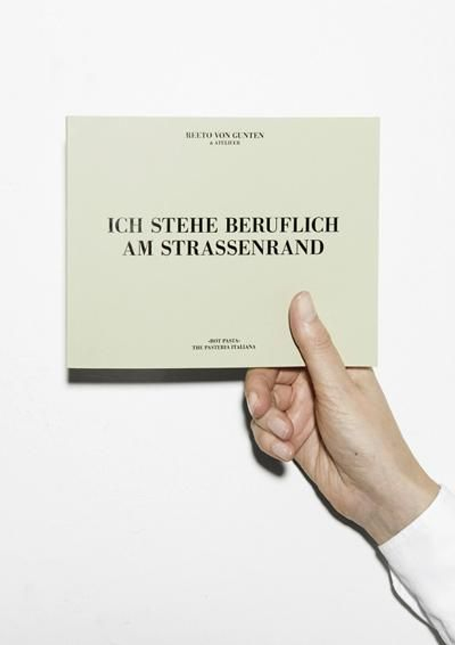 Reeto von Gunten (2014) / Gesammelte Menutafeln / 178 Seiten, 170 Farbbilder / Softcover, A5 – Sammlung sämtlicher vom Atelieer getexteten und von Reeto von Gunten geschriebenen Menutafeln für Hot Pasta in Zürich. Ein Zeitdokument für die Jahre 2012 - 2014 und gleichzeitig der Beweis dafür, dass das Atelieer aus jedem noch so banalen Werbe-Job einen Hingucker machen kann.